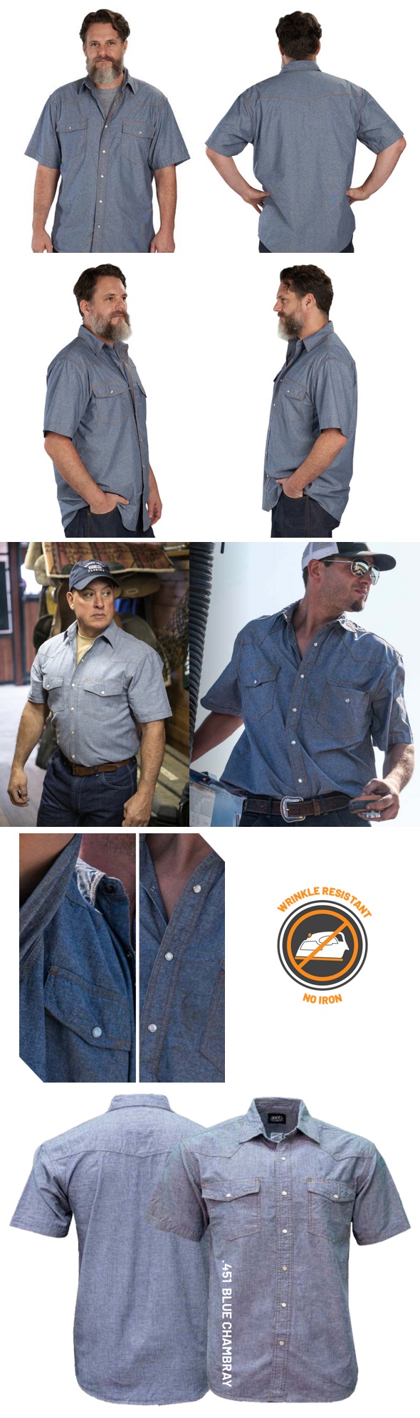 KEY® Blue Chambray Western Shirt, Short Sleeve